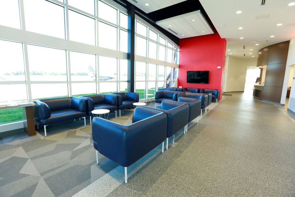 The new 6000 sq. ft. building consists of waiting lobby, greeting counter, office space, conference room, lounge area for pilots, along with showers and a sleeping room. The office will connect with the FBO hangar and has a covered drop off area along with a renovated and expanded parking lot.